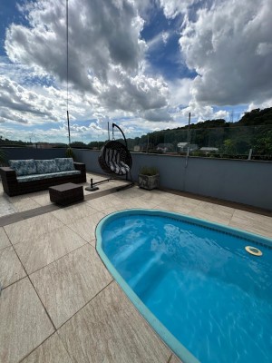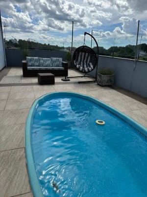 Descrição › Sensacional residencia, em privilegiada localização, com cerca de 220m2, composta por 3 quartos, varanda, churrasqueira, piscina aquecida com placas solares, energia fotovoltaica, ...